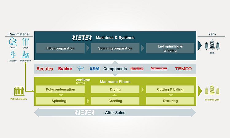 Rieter has a strong portfolio of products for the three central processes of ring spinning, compact spinning and rotor spinning and is one of the global market leaders. Following a strategic review, Rieter decides to sell its existing synthetic fiber activities.