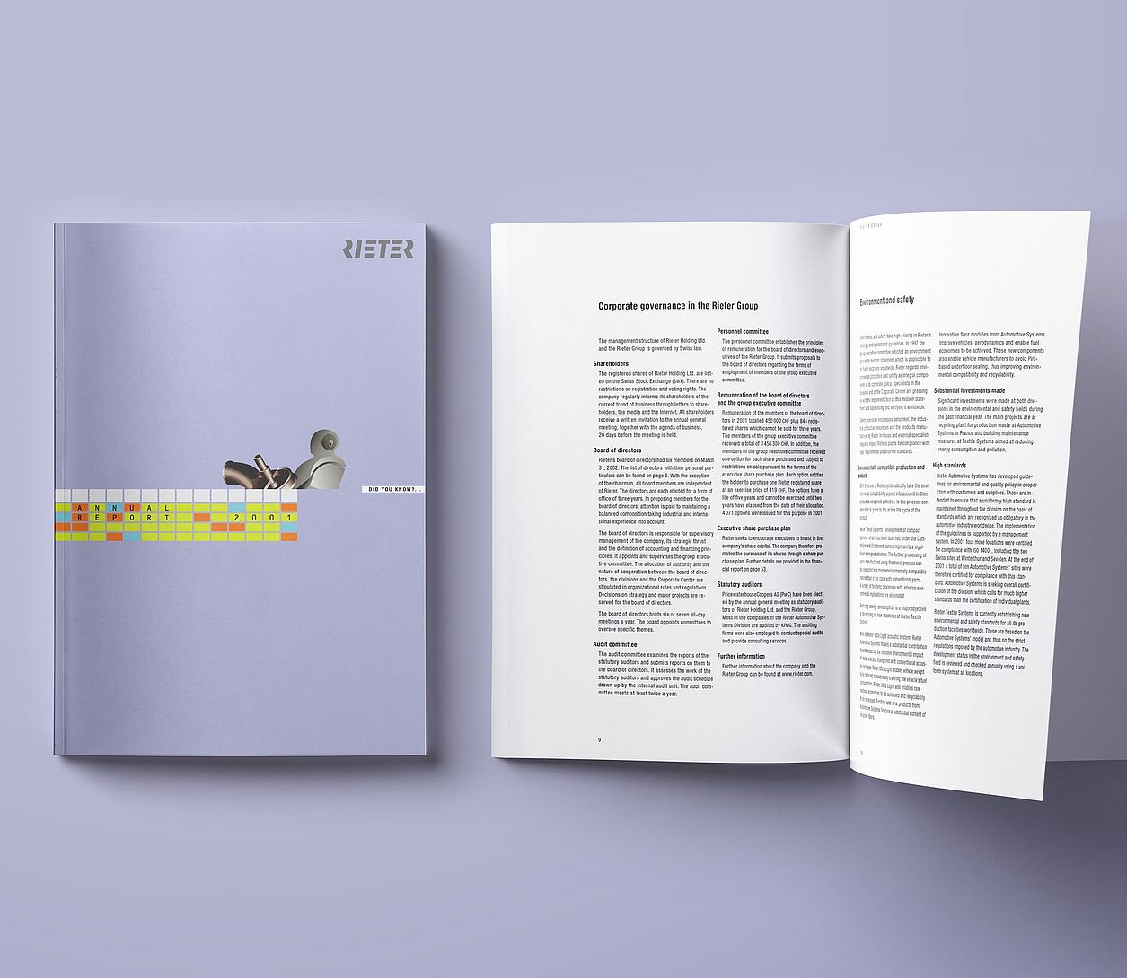 For the first time, Rieter publishes a separate chapter on corporate governance in its annual report. As a result of the Enron scandal in the US, the stock exchange regulator and the capital market place significantly tougher demands on the reporting of listed companies to ensure proper corporate governance.